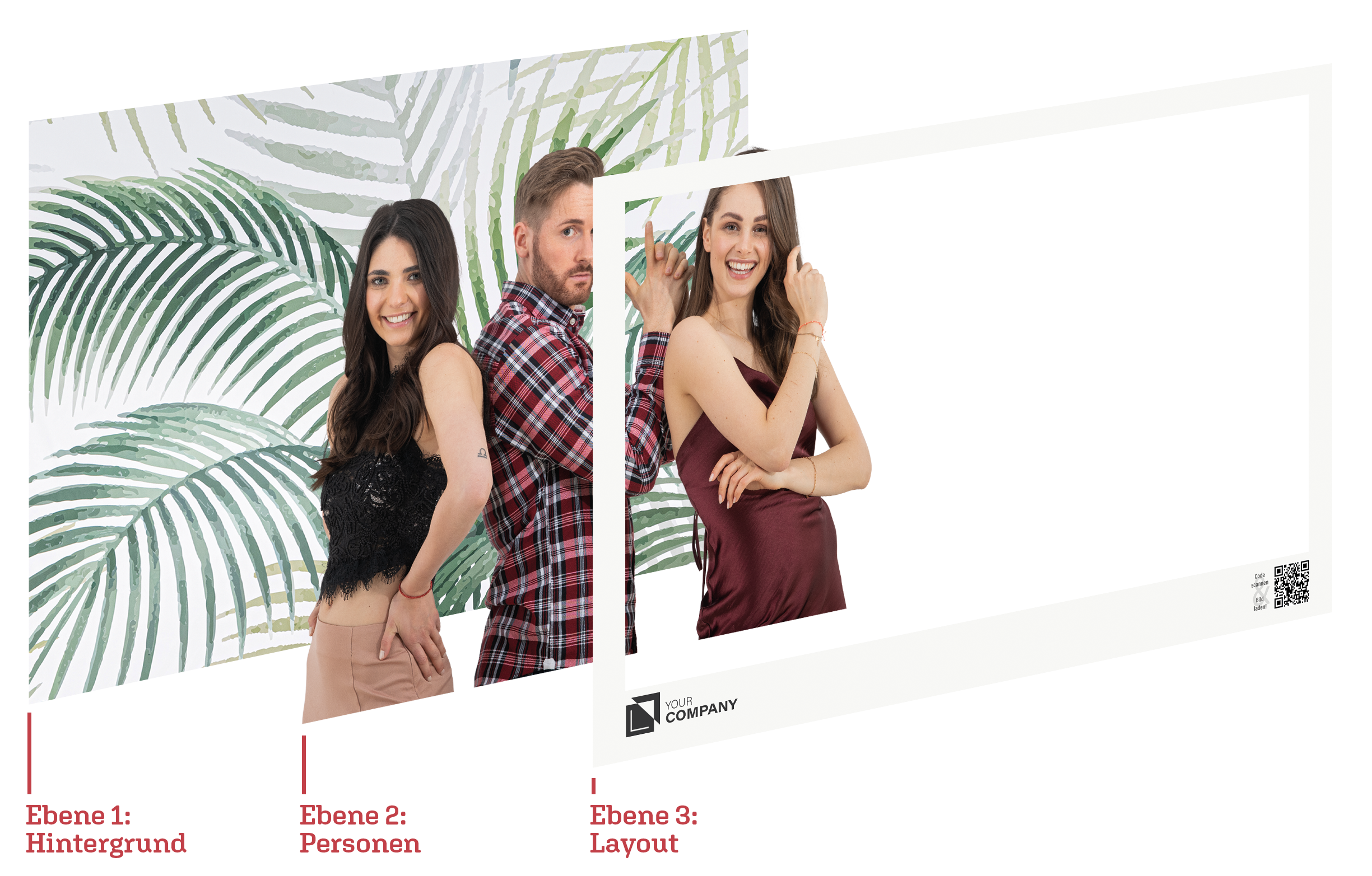 Die Fotos können von der fotoBOOX automatisch mit einer digitalen Maske versehen werden. Diese digitale Maske kann für ein Branding mit Logo oder Claim oder eine kurze Werbebotschaft genutzt werden – oder auch einfach das Event erwähnen, auf dem sie geschossen wurden. Auf diese Art werden die Fotos zu einem dezenten, aber wirkungsvollen Werbeträger, der seine Botschaft von selbst verbreitet.