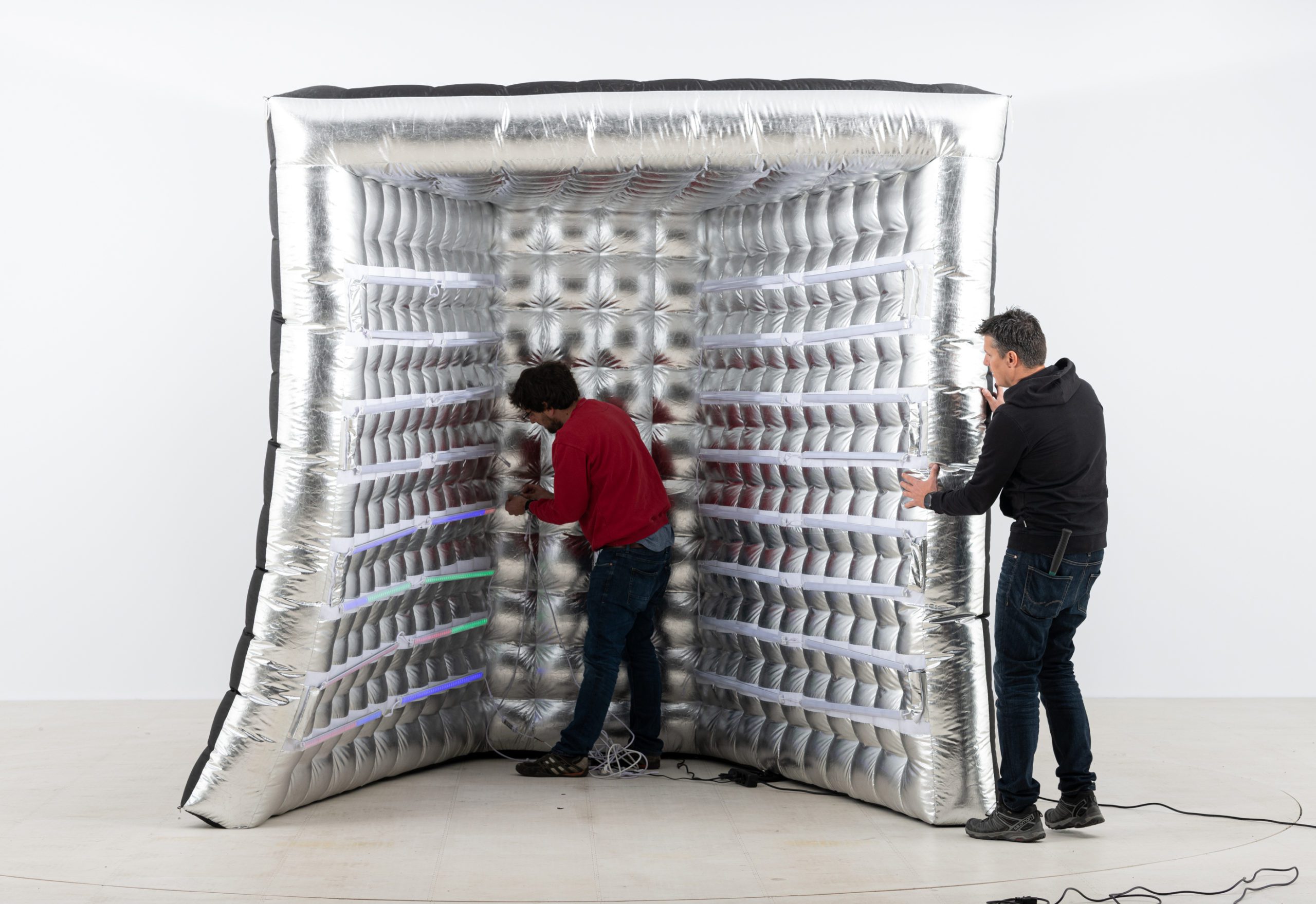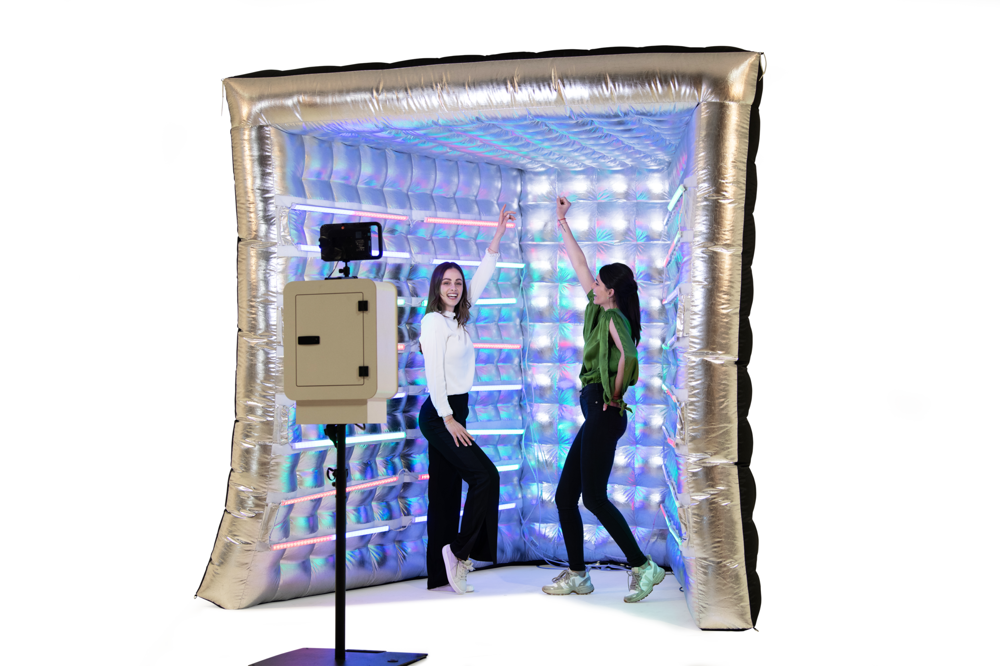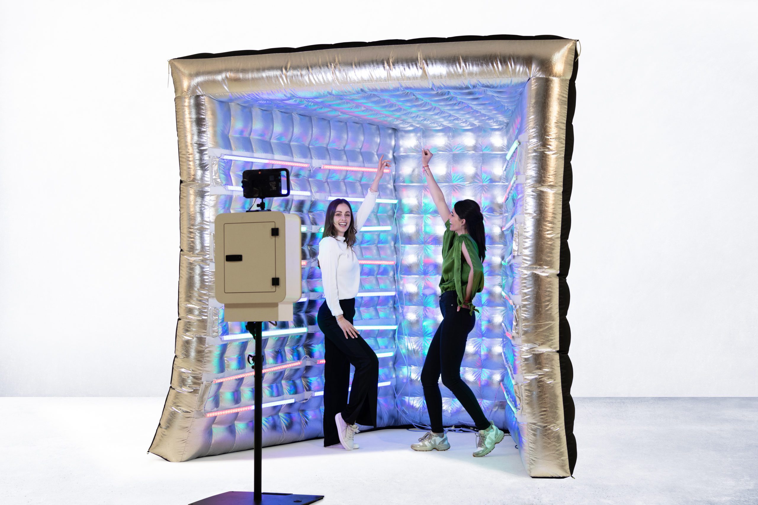 Die voughBOOX ist eine Kombination aus einer fotoBOOX mit einer aufblasbaren voughBOOX, die als Hintergrund dient. Mit den integrierten LED-Lichteffekten animiert die voughBOOX dazu, nicht einfach nur zu posieren, sondern vor der Boox zu tanzen und Spaß zu haben. Die voughBOOX wird als Paket mit einer fotoBOOX ausgeliefert und ist perfekt für Events, bei denen die Gäste in Partystimmung sind.